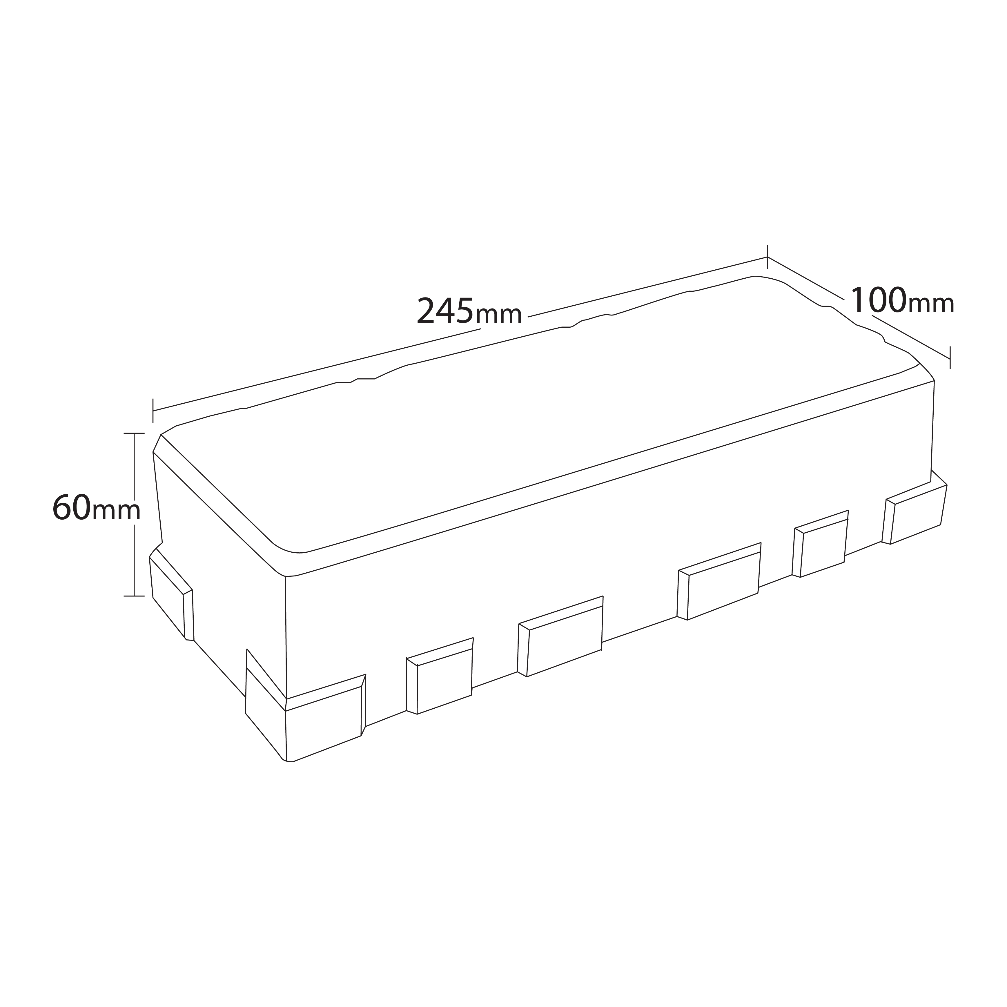 247X100X60mm | Area 0.2658 Sq. ft., 0.0247 Sq. mtr.
